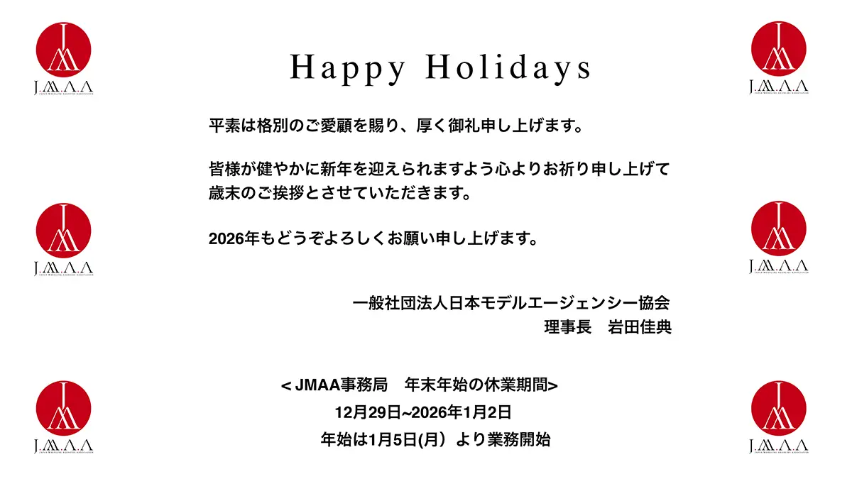 JMAA事務局 冬季休業期間のお知らせ